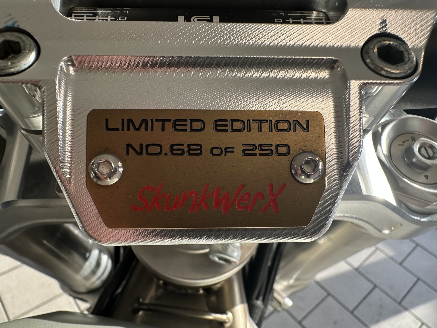 This bike, which is in immaculate condition, is number 68 out of 250 of the ‘Skunk Werx’ model. It has a factory fitted Gold Titanium Frame, a Performance Exhaust, a CRM Bespoke Spitfire Stand along with a CRM Factory Dust Cover.