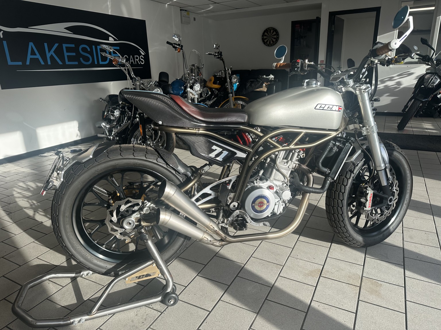Lakeside Motorbikes are excited to offer a unique opportunity to own a bespoke bike, the 2019 CCM Spitfire ‘Skunk Werx’. This silver bike is a great choice for those looking for a bespoke bike, as the CCM Spitfire features a petrol 601cc engine, making it a great option for riders who value performance.